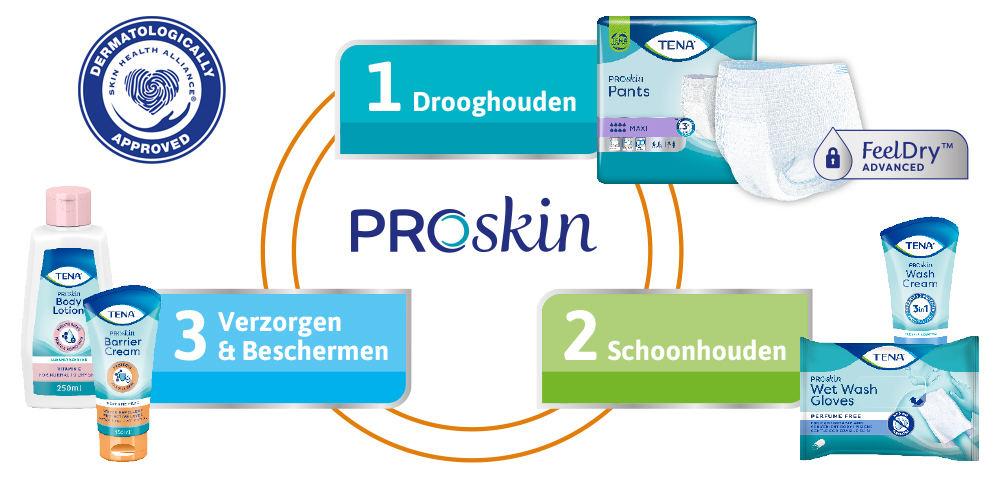 - Houd de huid droog met de absorberende producten met FeelDry Advanced™ van TENA ProSkin